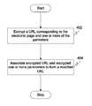 FIG. 4 is a flowchart illustrating a method for executing a request based on a plurality of parameters, in accordance with an embodiment of the invention. In response to embedding one or more scripts in an electronic page, a URL corresponding to the electronic page and one or more parameters are encrypted atstep402, Thereafter, atstep404, the encrypted URL is associated with one or more parameters to form a modified URL corresponding to the electronic page. In an embodiment, the URL is modified in order to send an encrypted request for one or more contents to be associated with the electronic page without getting blocked by the browser and/or computing device of the user. In an embodiment, the URL is encrypted in a way that the encrypted URL is in the same format as the original URL, therefore the browser and/or computing device of the user do not block the URL from being processed and thereby can not block the request for one or more contents to be associated with the electronic page. For example, if a URL corresponding to a request for one or more contents is in the format of http://domain/script.php?parameters, and the URL requested by the user is in the format of http://abc.com/index.php/12?, the URL requested by the user is modified in order to pass on the message in the URL corresponding to the request for one or more contents. Therefore, the modified URL may be in the format of http://abc.com/t124vdr3?q=cvb. Here, “t124vdr3?q=cvb contains the message regarding one or more contents to be associated with the electronic page, also, the domain, “abc.com” is kept unchanged so that the browser and/or computing device of the user consider it to be a genuine request for an information on the domain http://www.abc.com.