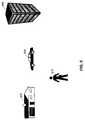 As indicated above, RF modules according to the invention may be constructed in a single or multi-part construction.FIG. 7A shows a RF module of single part construction integrated withinstrap710, whereasFIG. 7B shows a RF module of multi-part construction integrated withinstrap724 ofbag720. Inbag720,communications circuitry portion732 may be integrated within strap722 andbattery portion734 may be retained withinbag720 in a predetermined location.Cable736 may electrically couplecircuitry portion732 andbattery portion734.Battery portion734 may be removed from the bag for replacement or to be recharged, depending on the type of energy storage device contained inbattery portion734.