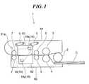 FIGS. 6A and 6B are views of the drivingunit10 and component parts associated therewith, as viewed in the original conveying direction, in whichFIG. 6A shows a state in which theapparatus1 is closed during the reference member reading period, andFIG. 6B shows a state in which theapparatus1 is opened during the reference member reading period. The state in which theapparatus1 is closed is defined as a state in which theupper frame81 and thelower frame82 are held in meeting contact with each other as shown inFIG. 1 and the original conveying passage can normally function. On the other hand, the state in which theapparatus1 is opened is defined as a state in which theupper frame81 is in a lifted position by being turned upward around thepivot shaft81a, whereby the original conveying passage is kept open for cleaning.