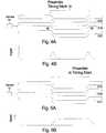Reference is made toFIGS. 4A,4B,5A,5B,6A and6B which will be used to illustrate the use of the timing mark in writing the first PES section during self-servo writing. The pairs of figures illustrate a possible path of a sensor (and the resulting signal) in relation to a selected set of tracks having a preamble timing mark. The three different sensor paths generate unique signal patterns which allows the servo system to distinguish the relative position of the sensor in these cases.FIG. 4B illustrates a signal from a sensor traveling the path illustrated inFIG. 4A and so forth. InFIG. 4A thesensor12 is following a path centered on the lower edge oftrack31B. When the sensor passes over thetransition region38 that begins thepreamble timing mark35, the first signal pulse shown inFIG. 4B is generated. Similarly the second signal pulse is generated when the sensor passes over thetransition region39 at the end of thepreamble timing mark35.