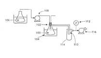 The micro spray dryer shown inFIG. 2 consists of anatomizer102 in the top of avacuum flask100 kept at 40° C. by awater bath104.Atomizer102 is a two-fluid spray nozzle (NIRO Aeromatic, 2.7 mm ID air cap, 1.0 mm ID fluid cap) where the atomizing gas is nitrogen delivered to the nozzle at ambient temperature and at 20 psi, and the drug/polymer test solution106 is delivered tonozzle102 at 40° C. at a flow rate of 1.0 gm/min using a peristaltic pump108 (Masterflex, model 7553-60, with pump head #7013-20, and Norprene tubing #6404-13). Microporous cellulose extraction thimble110 (Whatman Filter Co.) is mounted in avacuum trap114 to collect the solid spray-dried material, and a vacuum of 400 mbar (monitored by vacuum gauge112) is pulled on the system by means ofvacuum pump116, which aids in solvent evaporation.