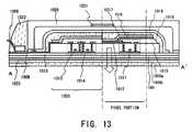 These TFTs (including1011,1013, and1014) are preferably manufactured in accordance with the n-channel TFT201 and the p-channel TFT202 in the above Embodiment 1.