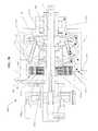 Referring toFIG. 1, an embodiment of atransmission100 is illustrated having alongitudinal axis11 about which multiplespeed adjusting balls1 are radially distributed. Thespeed adjusting balls1 of some embodiments stay in their angular positions about thelongitudinal axis11, while in other embodiments theballs1 are free to orbit about thelongitudinal axis11. Theballs1 are contacted on their input side by aninput disc34 and on their output side by anoutput disc101. The input and out putdiscs34,101 are annular discs extending from an inner bore near the longitudinal axis on their respective input and output sides of theballs1 to a radial point at which they each make contact with theballs1. The input andoutput discs34,101 each have a contact surface that forms the contact area between eachdisc34 and101, and theballs1. In general, as theinput disc34 rotates about thelongitudinal axis11, each portion of the contact area of theinput disc34 rotates and sequentially contacts each of theballs1 during each rotation. This is similar for theoutput disc101 as well.