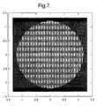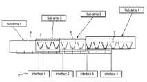 Referring toFIG. 7, a planar phased array of approximately circular outline is shown, diameter 2.4 m, comprising approximately 4000 elements. Elements are grouped into overlapping sub-arrays of 72 elements, spaced six elements apart in one direction, three in the other. Sub-arrays may be implemented as interlocking tiles, and each element participates in four sub-arrays.