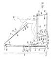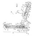 As is shown inFIGS. 1 and 2, thebench assembly130 includes two generally parallel floor-contact members162 that extend from the pivot-crossbrace148 to theend crosspiece164, forming a rigid, rectangular frame in contact with the floor. Threelegs166 are pivotally connected between the floor-contact members162 and thebench136.