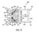 FIG. 9 is a top plan view of theexercise apparatus100 in its connected storage position. As is shown in this Figure, thebench assembly130 extends vertically, abutting thetower104.FIG. 9 also clearly illustrates the reduced space requirements of theapparatus100 in the connected storage position—only thetubular members106 extend beyond thetower104. Thetubular members106 are connected by thecrossbrace142.