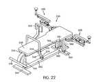 FIG. 23 is an exploded perspective view of the bench assembly ofFIG. 21 in a raised operative position, illustrating the attachment of accessories;