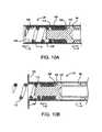 FIGS. 13A and 13B are longitudinal cross sections of a tip housing provided with an outer coating of a biocompatible polymeric hydrogel at the distal end of the housing that expands by absorption of body fluids following implantation as shown inFIG. 13B.FIG. 13B also describes the appearance of a bioabsorbable flange as it would appear prior to and immediately after implantation and prior to subsequent bioabsorption.