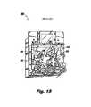 FIGS. 9-21 illustrate another embodiment of the presently disclosed printer or print engine shown generally as200.Printer200 includes many of the modular features discussed above with respect toprinter10.Printer200 offers both direct thermal printing and thermal transfer printing capabilities. Direct thermal printing uses specially treated label stock which contains dyes that turn black upon application of heat and pressure. Thermal transfer printing requires the use of a ribbon substrate having ink which is transferred onto a media upon application of heat and/or pressure to the ribbon substrate.