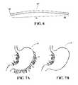 AtFIG. 28D, the proximal end portion ofinstrument50″ extending out of the patient is pushed on to deliver more of thetubing1210 into the stomach. Because thetubing1210 if flexible and the instrument is anchored at1220, the tubing snakes around and into contact with the mucosa of thegreater curvature3G of thestomach3. Vacuum is applied throughsuction holes1218 vialumen1212 and this attaches thetubing1210 to mucosa along the greater curvature as illustrated inFIG. 18D and the cross-sectional view ofFIG. 28E.