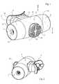 Further it is shown (seeFIG. 1) that thefront opening82 is provided with aprotection cap84 arranged with a plurality of openings85 (here in the form of curved grooves), presenting a sufficient total area of openings to allow for an appropriate flow of air without undue resistance and also protecting the filter by not allowing larger objects to pass through thecap84. InFIG. 3 it is shown that the form of theopenings85 may vary, e.g. to extend radially, which in many applications may present an advantage. FurtherFIG. 3 shows thatprotective caps84, may also be used to protect each one of, or at least one of, theopenings50,70 at theends5,7. In one embodiment allcaps84 may have the same design/size, which provides scale advantages.