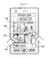 Then, as shown inFIG. 7D, the user can touch and hold thefirst frame720 with their left finger (the first pointing device), and thecontroller180 selects thefirst frame720 with theimage701. The user can then use their right finger to generate a flicking signal while holding their left finger as shown inFIG. 7D. Based on the flicking signal, thecontroller180 inserts a next-priority image702 in thefirst frame720 as shown inFIG. 7E. When the user uses their left finger to touch and hold thesecond frame730, thecontroller180 displays thesecond frame730 including theimage701 previously displayed in thefirst frame720 as shown inFIG. 7E.