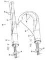 FIG. 18 depicts another embodiment of a loop retractor having two loops extending out of a sleeve in a retraction position.
