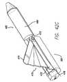 FIG. 42C shows another embodiment of atissue treatment device300 having amulti-blade fan septum470. The multi-blade fan septum includes a plurality of blades that are slidably joined together to fan out when in a raised position. The distal end of the blades are attached to apulley472 disposed in the tissue treatment device. There is aproximal fan blade474, which is raised first, and adistal fan blade476 that is attached to the tissue treatment device by a releasable pin. Any number of blades may be between the proximal and distal blades, and the preferred embodiment includes a total of five blades including the proximal and distal blades. Once the device is positioned within the stomach, the jaws of the tissue treatment device are opened, and apull cable478 that is attached to thepulley472 is pulled proximally to raise the blades of the multi-blade fan septum. The proximal blade is raised only to a position allowed by the other blades which fan out. After tissue is acquired, the releasable pin can be removed to free the distal blade, and the pull cable can be pulled proximally to swing the multi-blade fan septum into aslot480 of a modifiedbougie retractor482. The slot is sized to house the multi-blade fan septum. When the blades are secured within the modified bougie retractor, the jaws of the tissue treatment device can be closed, and the integrated device is then removed from the patient.