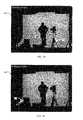 FIG. 3 is a flow diagram of anexample method300 for using luminance filtering techniques to identify noise and unwanted foreground details (e.g.,134 and136 inFIGS. 1E and 140 inFIG. 1F). Themethod300 is shown using luminance values, but other image characteristics can be used, for example, brightness or saturation. Themethod300 selects an area of the image, e.g. a pixel or group of pixels (step302). The average luminance of some areas surrounding the selected area (e.g., the average luminance of all of the surrounding pixels) is determined (step304), and if that average luminance is not close to the luminance of the selected area (step306), the selected area is identified as noise (step308). The number and size of surrounding areas to use can be specified by the parameter set obtained instep202 ofFIG. 2 or derived from other parameters in the parameter set (e.g., an acceptable luminance noise level or an acceptable luminance deviation). The luminance of the selected area is close to the average luminance if the difference between the two values is less than a threshold. The threshold can be specified by the parameter set. Themethod300 repeats for any further image areas (step310; return to step302).