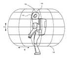 Thehumanoid robot130 employs a coordinate system for mapping various entities surrounding therobot130 as processed by a panoramic attention module described below in detail with reference toFIG. 2. In one embodiment, the coordinate system is a spherical coordinate system where a location is specified by an azimuth angle φ and an inclination angle θ. The coordinate system is local to therobot130 and is centered on the body of therobot130. In one embodiment, coordinates of entities are adjusted when the robot rotates its body.Lines150 represent gridlines for the spherical coordinate system.