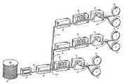 Referring toFIG. 2, an embodiment of the system of the present invention is depicted. One or more apparatuses are shown for producing coilable tubing. Importantly, several apparatuses may be arranged with respect to the other so that a single, larger coilable tube may be produced containing a different number of smaller tubes therein with no reconfiguration of any apparatus. As mentioned, concurrent and independent operation of each apparatus provides for a time and costs saving not yet achieved in the art. As shown, any number of smaller coilable tubes, generally designated by the reference numeral100, is introduced to the surface of strip metal102. In the preferred embodiment, each tube100 is introduced to strip102 after strip102 has passed through stock conditioner58 but before strip102 enters tube former60.
