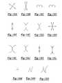 Further, in addition to the discussion of the clip contained herein, there may be greater than two straight or arcuate portions for the clips. The straight and arcuate portions can be of the same or different size or shape relative to each other. They may be formed of a single component (e.g., a single wire) or plural components (e.g., plural wires (2, 3 or more wires) such as might result in a structure as inFIGS. 4C,4D,5A and others illustrated). The portions need not be arcuate alone or straight alone, but may be straight, or a combination of straight and arcuate. In another embodiment, as seen inFIGS. 5A,5B and6B-6D, the clip may be “X” shaped or may have orthogonally disposed arms. The clips alternatively may be “N” shaped, arrows, arcs, tetragonal, or any of a number of different shapes. Combinations of any of the shapes identified may be employed also. Clips may also include one or a plurality of barbed ends (such as is illustrated by various of the examples provided inFIG. 16). When two or more wires are employed they may be configured relative to each other for deployment in a single common plane or over plural different planes. Though larger clips are also possible, when deployed, preferred clips are smaller than about 1 cm in its largest dimension (e.g., length, diameter, etc.), and more preferably, they are on the order of about 5 mm in its largest dimension.