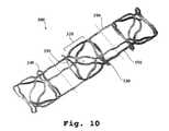 Also, by way of example, the length of a preferred embodiment is 18 mm and the initial diameter is 1.9 mm. In this embodiment, the final diameter, after balloon expansion, is preferably about 3.25 mm. Preferably, the stent length is about 8 mm to about 30 mm. In some embodiments, the stent length is up to about 60 mm. Typical coronary artery diameters are about 2 mm to about 4 mm and the expanded diameter of coronary stents is generally suitably dimensioned. It will be appreciated that other body lumens can have diameters up to about 1 cm and stents for these lumens have a suitable expanded diameter. The length of thefiber stent110 can be increased by increasing the number of largecentral lobes161 andperipheral lobes181. Theperipheral lobe181 and largecentral lobe181 diameters may be adjusted to set the final diameter of the stent. For example, coronary stents commercially available have a final expanded diameter range of 2-5 mm. It will be appreciated that the stent may be appropriately sized for the lumen and/or application.