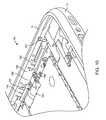 Springs114 may be welded or otherwise mounted tobezel14. When the tilt assembly is mounted in the housing assembly as shown inFIG. 8, spring prongs182 may protrude into the holes such asholes196 that are formed bybent portions194 inclips112.Springs114 may also have one or more prongs that form grounding structures (e.g., toground spring114 andbezel14 to midplate structures such asmidplate member206 and vertical portions208).
