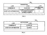 FIG. 4 depicts a block diagram of anexample suggestion command156, according to an embodiment of the invention. Thesuggestion command156 comprises acommand identifier field405, aclass identifiers field410, and anoptimization level field415. Thecommand identifier field405 identifies the command as a suggestion command and instructs thevirtual machine152 to start path optimization of the classes identified in theclass identification field410. Theclass identifiers field410 specifies one or more class identifiers for which path optimization is requested by thesuggestion command156. Theoptimization level field415 specifies either a first level optimization or a second level optimization and a time threshold value.