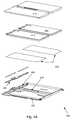 FIGS. 3-9 illustrate the operational components ofportable computing device100. The operational components are organized in layers. The relationship and organization of the operational components within each layer and the relationship between layers can be used to facilitate both the assembly and optimization of the Z stack of the internal components ofportable computing device100. In this way, minimizing the Z stack,portable computing device100 can be extremely compact, sturdy, aesthetically pleasing and ergonomic at relatively low cost.