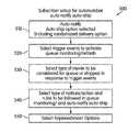 FIG. 2 illustrates a queue control electronic interface employed in the present invention that is adapted for assisting users/subscribers to set up queue monitoring control parameters, queue notification parameters, queue replenishment parameters and other queue control options. It will be understood, of course, that many of these display areas/fields could be integrated as desired intoqueue status interface100 as well if desired.