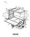 An alternative exemplary embodiment of thetravel trailer10 is shown inFIG. 21. Theframe12 can include one ormore legs114 that are deployed when thetravel trailer10 is placed into the camping configuration. Thelegs114 are bolted onto the bottom of theframe12 and can be capable of pivoting and being positioned upon the ground as desired in order to help provide stability to thetent22. Thelegs114 may be Atwood® Stabilizer Jacks provided by Atwood® Mobile Products having offices at 1120 North Main Street, Elkhart, Ind., USA. Fourlegs114 are illustrated. However, it is to be understood that any number oflegs114 may be used in accordance with various exemplary embodiments. Thelegs114 may be attached to the cross members of thefloor24 of theframe12 in certain exemplary embodiments. However, other embodiments are possible in which thelegs114 are either bolted or welded onto theside frame components30 and32 or onto other portions of theframe12.