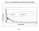 FIG. 7 shows a comparison of the average plasma levels of all patients at the various time points as indicated, along with the standard deviation, for the Imitrex® nasal spray Reference and Formulation A which contains 0.18% dodecyl maltoside excipient. The Cmax for Formulation A is approximately 60 ng per mL, or approximately 4 times the Cmax observed for the Imitrex nasal spray Reference. The T-max is reduced from 1-2 hours for the Reference to approximately 8-10 minutes for Formulation A which contains alkylsaccharide and the presumed therapeutically relevant Cmax value of 15 ng/mL achieved by the Reference formulation in 1-2 hours was reached in approximately 2 minutes in the case of Formulation A.