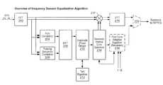 SUMMARYVarious embodiments of the present invention are directed to an equalization method. The equalization method may be performed by any of various devices which receive signals. In one set of embodiments, the invention comprises a frequency domain equalization algorithm (FDEA). The FDEA is based on transforming the inbound symbol stream to the frequency domain, multiplying the real-time spectrum by a distortion-canceling spectrum, and then transforming the resulting spectrum back to the time domain for output of a symbol stream in the time domain. The frequency domain equalization algorithm may achieve a number of advantages over conventional digital filters. Such advantages may include the ability to compensate for echoes with greater time separation from the main path, the ability to compensate for pre-echoes as well as post-echoes, the ability to compensate for much more severe Doppler shifts, rapid convergence, and continuous updating.