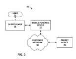 SUMMARYIn general, the invention is directed to a computer forensic system for retrieval and analysis of computer evidence. The computer forensic system includes a forensic device that allows a user, such as an investigator or network administrator, to remotely interrogate a target computing device in order to collect and analyze computer evidence that may be stored on target computing device. The forensic device allows the user to acquire the computer evidence from the target computing device with a reduced impact on target computing device. In other words, the forensic device allows the user to interrogate the target computing device to acquire the computer evidence without requiring the physical seizure or otherwise “shutting down” of the target device.