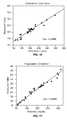 FIGS. 11-13 show calibration curves generated by plotting concentrations of blood samples against percent reflectance (% R) values read on a BioScanner Plus™ instrument.FIGS. 14-16 show plots of measured HDL, total cholesterol, and triglycerides, respectively, versus known concentration. As shown, the coefficient of correlation R2 in each case is very good.