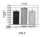 FIG. 2 is a histogram of murine VEGF concentration (in pg/ml) in hypoxic NIH 3T3 cells treated with no siRNA (“−”); nonspecific siRNA (“nonspecific”); or siRNA targeting human VEGF mRNA (“VEGF”). Each bar represents the average of six experiments and the error is the standard deviation of the mean.