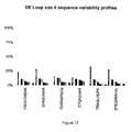 FIG. 12 shows sequence diversity of an exemplary loop region in the form of amino acid variability profile (frequency distribution). DEloop length size 6.