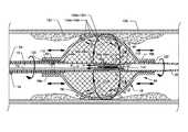 FIG. 7, a first alternative embodiment, is a plan view of the visible components of a cross stream thrombectomy catheter with flexible and expandable cage;