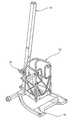 Movement of theidler roller3 is related to movement of the emergency brake. At the bottom of travel, the idler roller mount is utilized to latch thecarriage15 to themast14 in the lowered position. This provides an added benefit of ensuring that the carriage does not move when the mast is lifted off the base holding the carriage. It also stops the carriage from moving along the mast during transport.