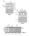 FIG. 8 is an illustration of a portion of a transition region between an overlapping polygonal cell stent section and a braided stent section where the tubular stent has been cut open along a line parallel to the stent axis and flattened.