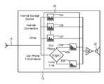 Similarly thewireless audio device10 ofFIG. 1B may have circuitry, represented inFIG. 2 byswitch22 for selecting signals from one of theinternal storage device16, theinternet block18, or the cell phone block20 (or another audio signal source) for wireless transmission to theheadphone13. The switch may be a user operable physical or virtual switch, or may be logic that selects a source based on a hierarchy or by a computer program executed by a microprocessor in thewireless audio device10. The headphone ofFIG. 1B may also have circuitry, not shown, for selecting signals from one of thewireless audio device10,wireless audio device11, or physical communications link17 for reproduction. The discussion below is directed to the implementation ofFIG. 1A; however the same principles may to the implementation ofFIG. 1B