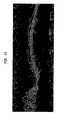 FIGS. 15 and 16 are SEMs of a section of the sample ofFIG. 7 along the line XS-C. It is seen in these Figures that the pileated regions (left side) are “stacked up” to a higher local basis weight. Moreover, it is seen in the SEM ofFIG. 16 that a large number of fibers have been cut in the pileated region (left), showing reorientation of the fibers in this area in a direction transverse to the MD, in this case, along the CD. Also noteworthy is that the number fiber ends observed diminishes as one moves from left to right, indicating an orientation toward the MD as one moves away from the pileated regions.