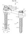 Referring againFIG. 1D which shows the relationship between aspinal prosthesis105 and aspine190.Bone anchor150 is implanted in avertebra192apassing throughpedicle194aintospinal body196a.Spinal screw170 is implanted in avertebra192bpassing through apedicle194bintospinal body196b. A secondspinal screw170 is implanted in avertebra192cpassing through apedicle194cintospinal body196c.Spinal screws170 androd110bhold vertebrae192band192cin fixed relationship. This embodiment of a spinal prosthesis is suitable for use for example, wherevertebrae192band192care to be fused together. As shown inFIG. 1D, wherebone anchor150 androd110bprovides load-sharing and permits a controlled range of motion between theadjacent vertebrae192a,192b. Thereby stabilizing a level of thespine190 while restoring and/or preserving some natural motion of thevertebrae192a,192bat that level. This configuration can, in some embodiments, be utilized to prevent adjacent segment deterioration by supporting a spinal motion segment adjacent a spinal fusion.