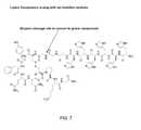 FIG. 8. The figure depicts a chemical structure of arginine vasopressin with three glycine residues at the N-terminus attached to three Histidine residues. This is also referred to as “His3Vas”. Using reverse phase HPLC chromatography in a Rainin (C18, 5 μm, 4.6×250 mm) eluted with a linear gradient from 0% acetonitrile/water/0.1% TFA to 60% acetoinitrile/water/0.1% TFA over 45 minutes at a flow rate of 1 ml/min, the His3Vas showed retention time of 18,45 minutes as monitored at 215 nm and showed greater than 95% purity. Using mass spectrometer for total ion current the purity was confirmed and a mass of 1668 Dalton was found corresponding to protonated peptide or the molecular ion peak on mass spectroscopic analysis. This is consistent with the theoretical molecular mass of 1667.9 Dalton when protonated. The absorption spectra showed a peak at 260 nm, which is about 38 times less than at 210 nm.