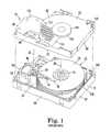 FIG. 1 is a partial perspective view of a prior art hard disk drive with the top cover of the drive housing removed to illustrate certain features.