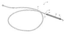 FIG. 16 shows a highly schematic view of an alternate embodiment of a mesh design useful to facilitate retraction of the expanded cannula into a sheath; and