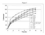 Unless otherwise specified, a drug release rate obtained at a specified time refers to the in vitro drug release rate obtained at the specified time following implementation of an appropriate dissolution test. The time at which a specified percentage of the drug within a dosage form has been released may be referenced as the “Tx” value, where “x” is the percent of drug that has been released. For example, a commonly used reference measurement for evaluating drug release from dosage forms or pharmaceutical compositions is the time at which 90% of drug within the dosage form or pharmaceutical composition has been released. This measurement is referred to as the “T90” for the dosage form.