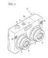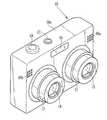 The rear face of thecamera body10ais provided with left speaker holes23 for emitting sound outputted from a left speaker81 (seeFIG. 3) to the outside, and right speaker holes24 for emitting sound outputted from a right speaker82 (seeFIG. 3) to the outside. The left speaker holes23 are disposed at the left side from theLCD20, and the right speaker holes24 are disposed at the right side from theLCD20.