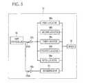 Animage input controller40 is connected to theCPU50 via a data bus49 (seeFIG. 3), and controls theCDS34, theAMP35, and the A/D36 based on commands from theCPU50. To theCPU50, there is connected anEEPROM57 that stores various control programs and setting data. TheCPU50 controls individual parts based on the programs of theEEPROM57. Areference numeral58 denotes a RAM. Areference numeral69 denotes a battery for supplying electric power to individual circuits.
