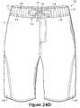 A majority ofapparel100 is formed from various textile elements that are joined through stitching, adhesives, bonding, or thermobonding, for example, to define each ofregions110 and120. The textile elements may be formed from either stretch textiles or non-stretch textiles. Although non-stretch textile elements may be utilized inapparel100, an advantage to stretch textile elements is that portions ofregions110 and120 will stretch or otherwise elongate to conform with movements of individual10 during aquatic or land-based activities, thereby providing less restriction and a greater freedom of movement during the activities. The textile elements may also be formed from either woven or knitted textiles. Although knitted textile elements may be utilized inapparel100, an advantage of utilizing woven textile elements relates to high durability and a low tendency to permanently deform when subjected to tensile forces (i.e., when stretched). A further advantage to woven textile elements, which benefitsapparel100 having the configuration of board shorts or water shorts, is that small spaces between yarns within the woven textile elements tend to hold a small quantity of water and exhibit little deformation as a result of being saturated with water. In some configurations, portions ofapparel100 may also include various appliqués, transfers, patches, indicia, tags, pulls, grommets, or other aesthetic or functional features.