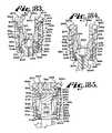 With reference to FIGS.340 and377-382, the closure structure or closure top18 shown with theassembly8001 is rotatably received between the spacedarms8062 of thereceiver8010. It is noted that theclosure8018 top could be a twist-in or slide-in closure structure. The illustratedclosure structure8018 is substantially cylindrical and includes a an outer helically wound guide andadvancement structure8182 in the form of a flange that operably joins with the guide andadvancement structure8072 disposed on thearms8062 of thereceiver8010. The flange form utilized in accordance with the present invention may take a variety of forms, including those described in Applicant's U.S. Pat. No. 6,726,689, which is incorporated herein by reference. Although it is foreseen that the closure structure guide and advancement structure could alternatively be a buttress thread, a square thread, a reverse angle thread or other thread like or non-thread like helically wound advancement structure, for operably guiding under rotation and advancing theclosure structure8018 downward between thearms8062 and having such a nature as to resist splaying of thearms8062 when theclosure structure8018 is advanced into thechannel8064, the flange form illustrated herein as described more fully in Applicant's U.S. Pat. No. 6,726,689 is preferred as the added strength provided by such flange form beneficially cooperates with and counters any reduction in strength caused by the any reduced profile of thereceiver8010 that may more advantageously engage longitudinal connecting member components. The illustratedclosure structure8018 also includes atop surface184 with aninternal drive8186 in the form of an aperture that is illustrated as a star-shaped internal drive such as that sold under the trademark TORX, or may be, for example, a hex drive, or other internal drives such as slotted, tri-wing, spanner, two or more apertures of various shapes, and the like. A driving tool (not shown) sized and shaped for engagement with theinternal drive8186 is used for both rotatable engagement and, if needed, disengagement of theclosure8018 from thereceiver arms8062. It is also foreseen that theclosure structure8018 may alternatively include a break-off head designed to allow such a head to break from a base of the closure at a preselected torque, for example, 8070 to 8140 inch pounds. Such a closure structure would also include a base having an internal drive to be used for closure removal. A base orbottom surface8188 of the closure is planar and further includes apoint8189 and arim8190 for engagement and penetration into thesurface8022 of therod8021 in certain embodiments of the invention. Theclosure top8018 may further include a cannulation through bore (not shown) extending along a central axis thereof and through the top and bottom surfaces thereof. Such a through bore provides a passage through theclosure8018 interior for a length of wire (not shown) inserted therein to provide a guide for insertion of the closure top into thereceiver arms8062.
