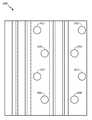 FIG. 5 is a top-down view of thecircuit500, adapted according to one embodiment of the disclosure. Thecircuit500 is similar to the circuit400 (FIG. 4) but includes a second row of contacts503-506. The contacts503-506 are also asymmetrically placed and conform to a pattern of placement the same as that of the contacts403-406.FIG. 6 is a top-down view of thecircuit600, adapted according to one embodiment of the disclosure. Thecircuit600 includes a second row of contacts603-606, which have a pattern of asymmetry that is a mirror image of that of the pattern of the contacts403-406.FIG. 7 is a top-down view of thecircuit700, adapted according to one embodiment of the disclosure. Thecircuit700 includes a second row of contacts703-706, which are placed symmetrically with respect to a line drawn parallel to thechannel412.FIGS. 5-7 illustrate that embodiments can be scaled to include other groupings of conductive structures (e.g., row or columns of contacts) and that the various groupings can be asymmetrical according to any of a variety of patterns or even be symmetrical.