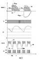 FIG. 5 is a timing diagram showing exemplary operating waveforms over one period of the AC input voltage with dimming;